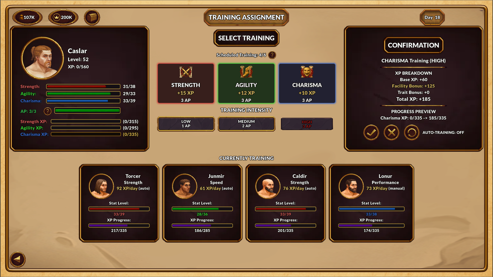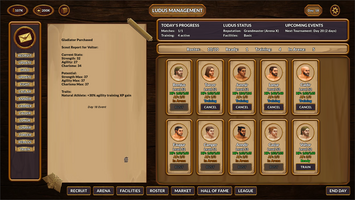 Gladiator management sim. Buy gladiators, train fighters, fight in arena